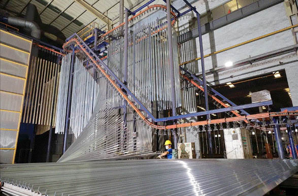 公司現(xiàn)擁有鋁錠熔鑄、均質處理、擠壓、拋光、陽極氧化著色、電泳涂漆、靜電粉末噴涂、氟碳噴涂、木紋噴涂、穿條隔熱、深加工、精加工等系列生產(chǎn)線。